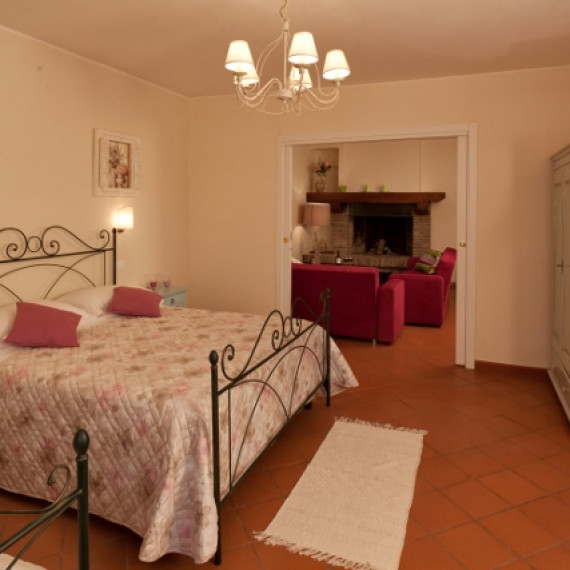 -    Ein Doppelzimmer mit Doppelbett und Einzelbett, welches einen zauberhaften Blick auf die Felder und unberührten Wälder um das Landhaus bietet.