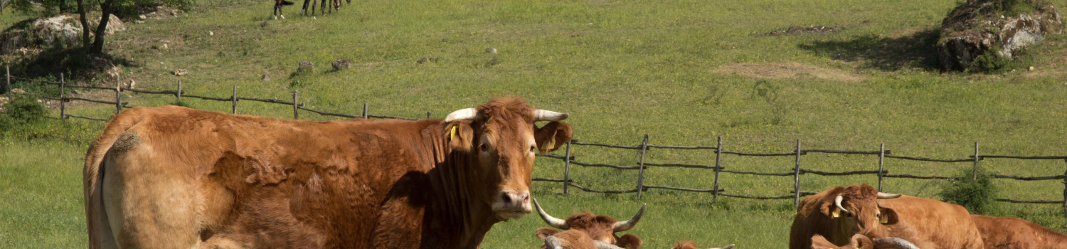 Abbiamo 50 mucche di razza "Limousine" (quelle marroni) che vivono tra la stalla e i pascoli che circondano l"Agriturismo", i loro vitellini non le mollano mai e sono sempre affamati di latte...