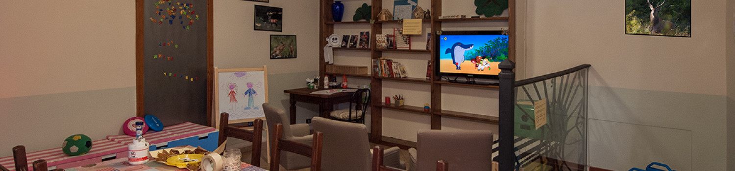 Dal 2017 inoltre, i bimbi sono felici anche se piove! Abbiamo inaugurato due salette giochi interne, una dedicata ai bimbi più piccoli con tappeto morbido, e l’altra pensata per i più grandi, con TV, fogli e colori, giochi in legno, libri e tanto altro !